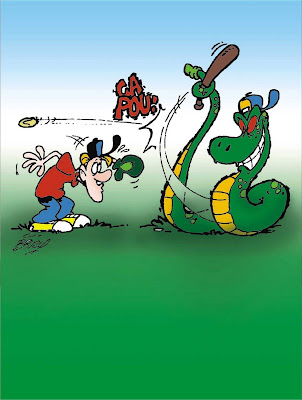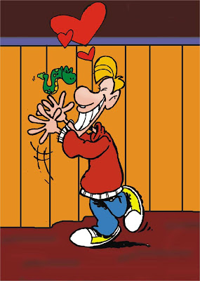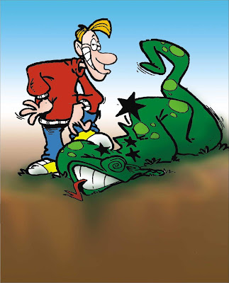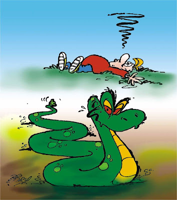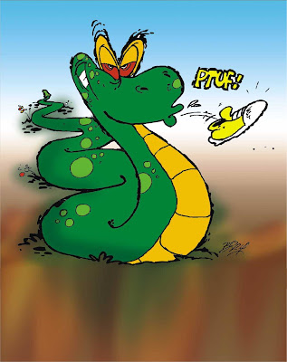 Ela abriu a boca e em questão de segundos engoliu completamente o rapaz. A seguir, palitou os dentes, deu um enorme arroto de satisfação e foi rastejando-se por aí, deslizando a sua vitória.
