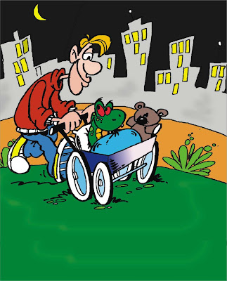 No finalzinho da tarde, quando o sol não estava mais tão quente assim, os dois saíam para agradáveis passeios. A preocupação maior era para que o filhotinho de cobra apanhasse gripe.