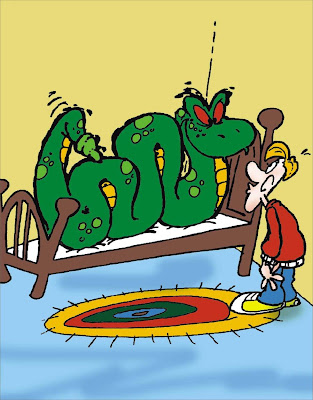 Quando foi um dia, o meu amigo retornou “morto” de cansado do trabalho. Durante o caminho ele só pensava em tomar uma boa ducha, uma boa refeição, e cair na cama. As duas primeiras partes do programa ele cumpriu direitinho, mas quando foi para a cama, quem estava lá? Exatamente a serpente. Com voz de nítida impaciência, ele foi enxotando a cobra do lugar: “mas o que é isso? Vamos saindo daí, rapidinho, que estou morrendo de sono. Sai… sai!