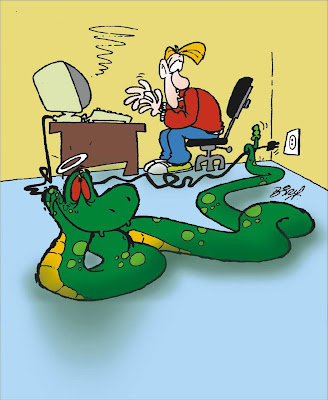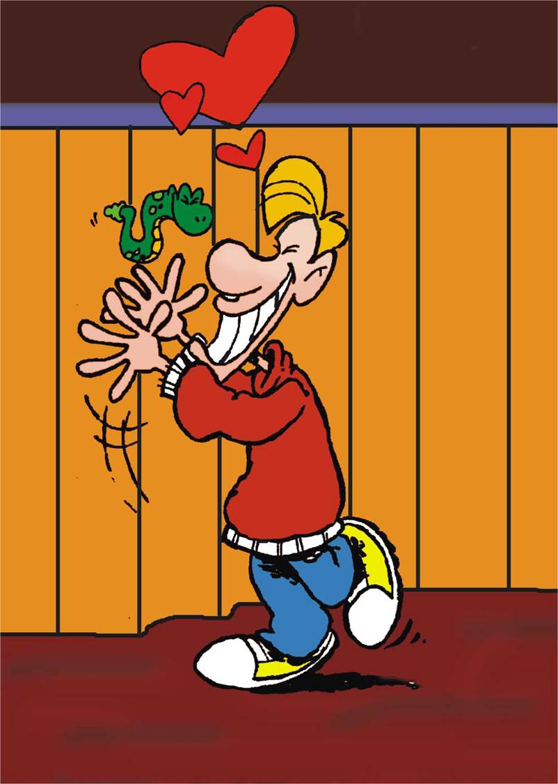 Depois de alguns meses, a cobrinha tinha crescido bastante. Já não era mais uma cobra “bebê”. Numa noite de muito frio, o meu amigo assistia a um programa de televisão, quando teve uma grata surpresa; a cobrinha começou a envolvê-lo “ Ei, o que é que está fazendo?” Perguntou, enquanto ria.
