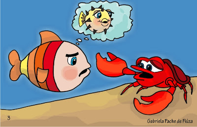 Splash, um peixinho que passava na hora, ouviu Pipoca reclamar e disse: